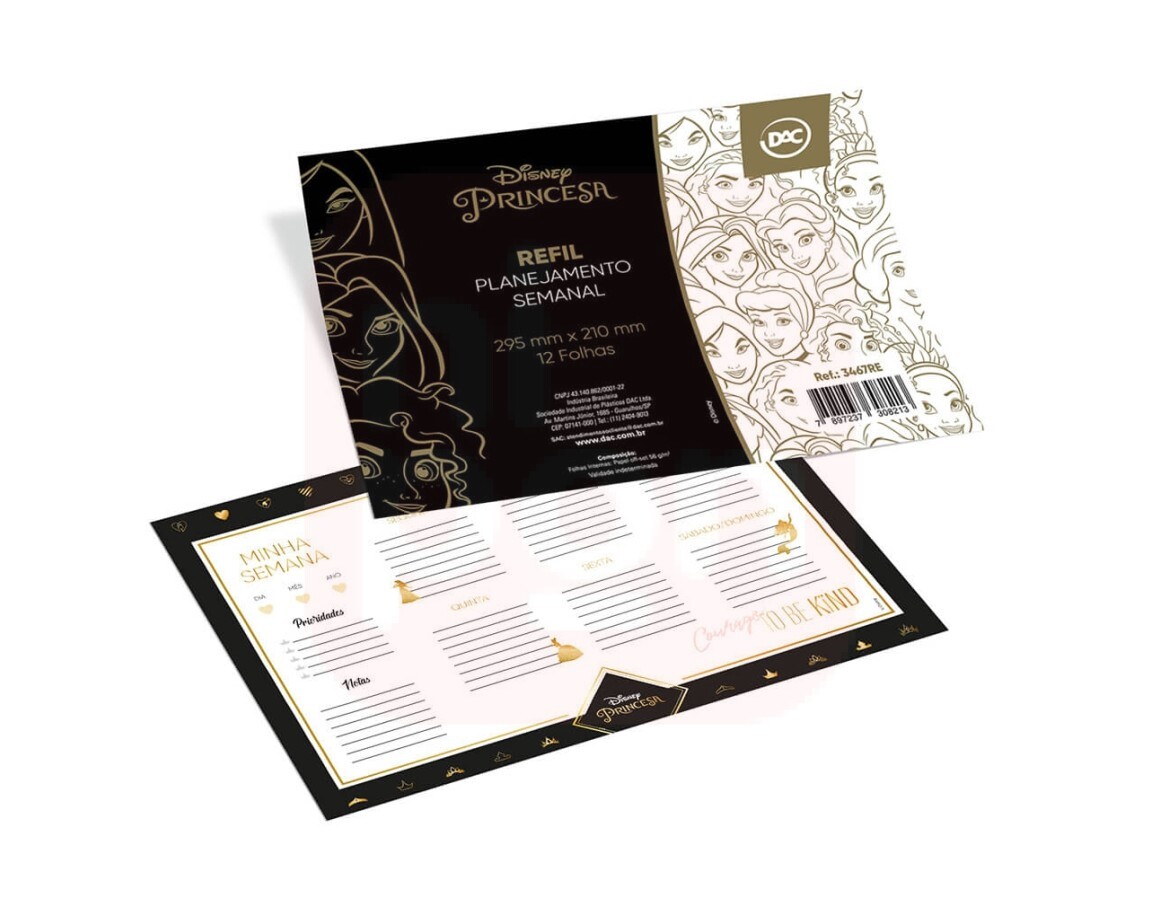 Refil Para Prancheta com Planner Semanal Princesas - Dac