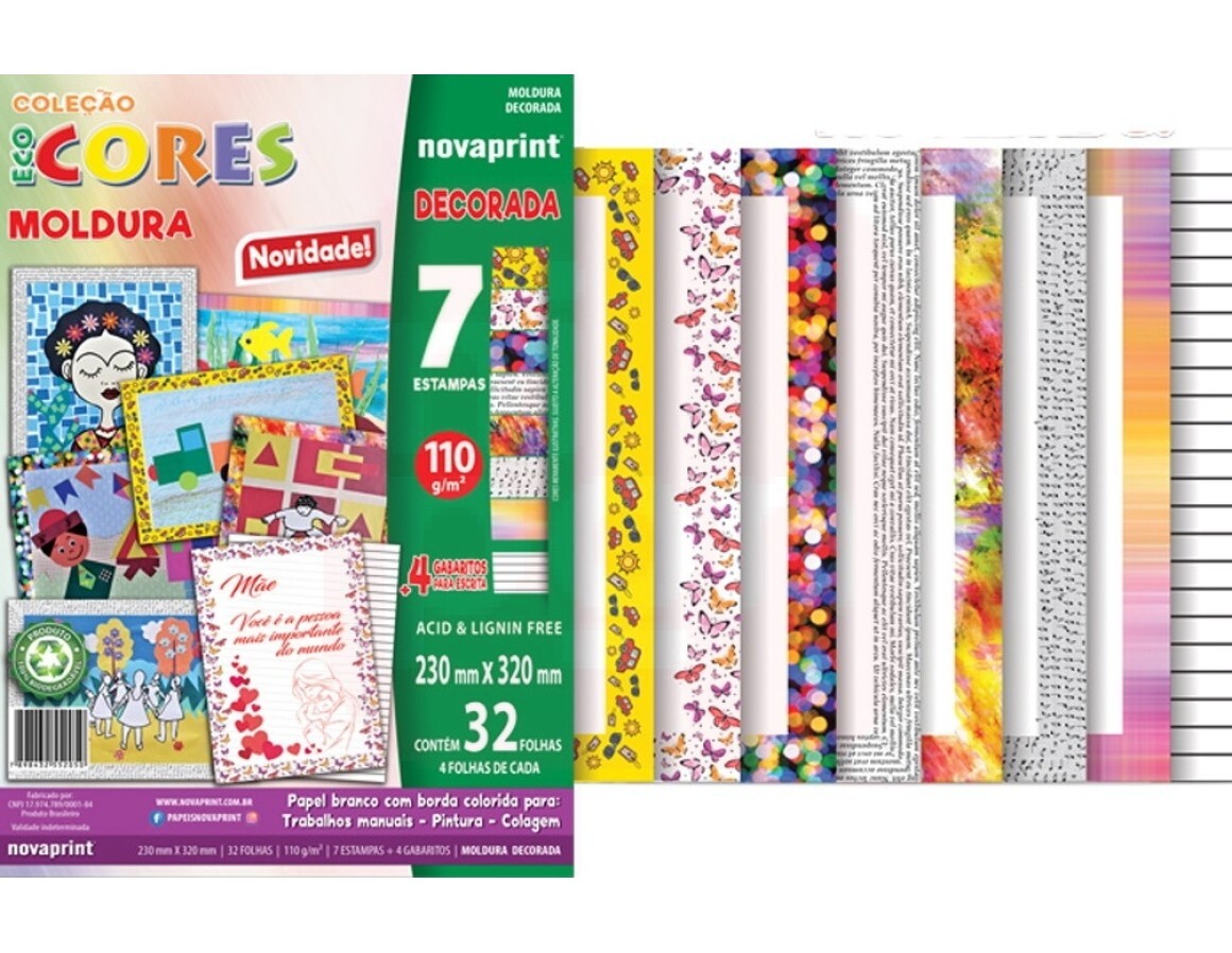 2. Bloco Ecocores Moldura Decorada 110g 32 Folhas - NovaPrint