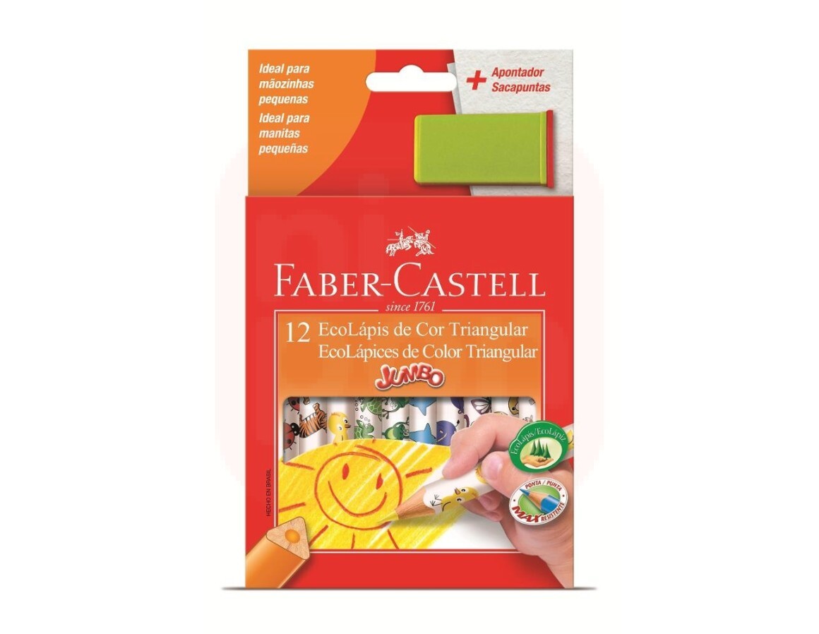 Lápis de Cor Triangular Jumbo 12 cores + Apontador - Faber-Castell