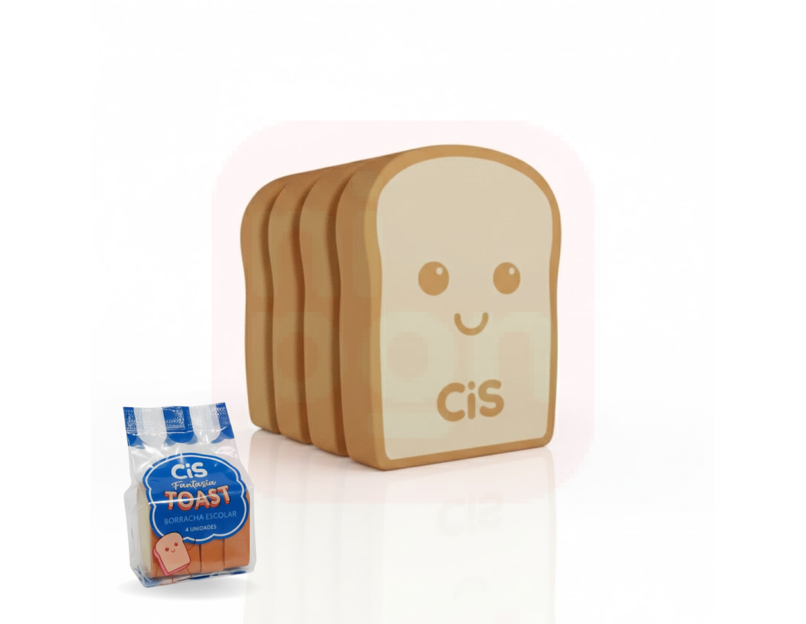 A Borracha Toast CIS é perfeita para quem ama papelaria divertida e funcional. Inspirada em torradinhas super fofas, o kit com 4 unidades traz cores vibrantes e excelente desempenho na hora de apagar. Feita com material macio, remove o grafite sem danificar o papel, ideal para uso escolar, diário ou escritório.