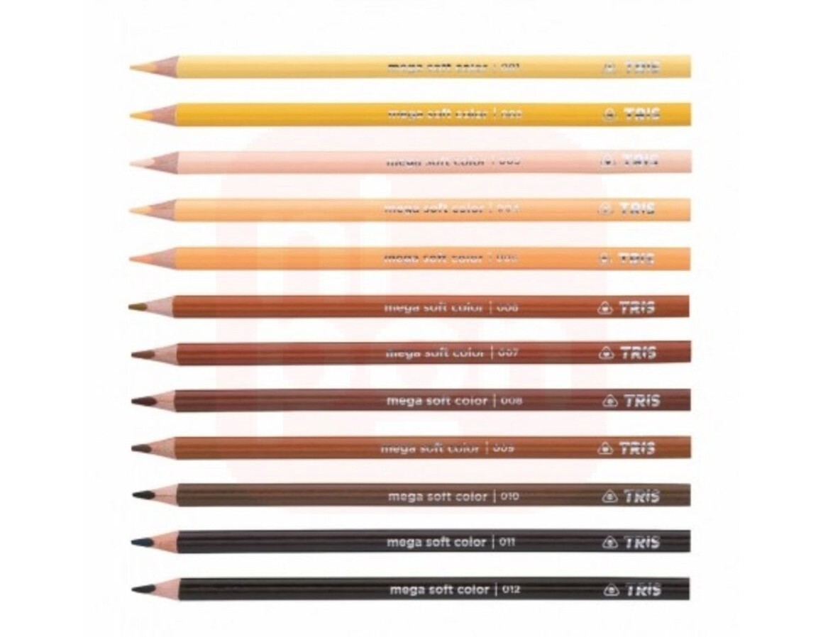 Dê mais realismo e diversidade às suas criações com o Lápis de Cor Tris Mega Soft – Tons de Pele, Estojo com 12 Cores! ???