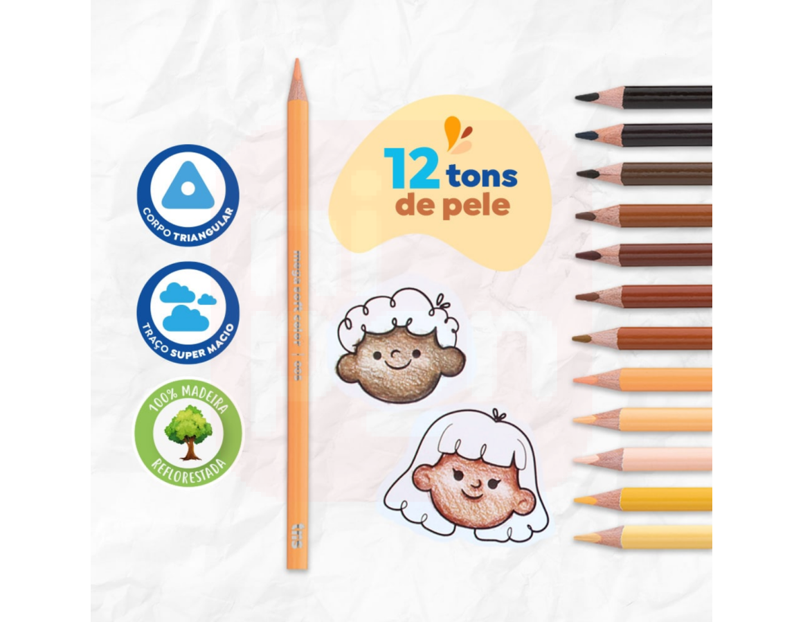 Lápis de Cor 12 Cores Tons de Pele Mega Soft Color - Tris